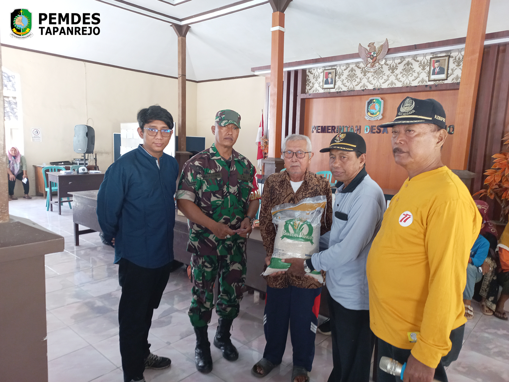 Kegiatan pelaksanaan penyaluran bantuan sosial atau Bansos desa tapanrejo pada hari minggu, 21 mei 2023 bertempat dibalai desa tapanrejo. Bantuan sosial yang disalurkan ini yaitu bantuan sosial BPNT tunai, dan PKH untuk periode bulan april – mei 2023. Untuk penyaluran bantuan BPNT tunai, dan PKH langsung disalurkan atau dibagikan oleh pihak dari PT. Pos Indonesia. Selain penyaluran BPNT tunai dan PKH juga disalurkan bantuan pangan nasional atau BPN yang disalurkan secara bersamaan oleh PT. Pos Indonesia. Untuk bantuan pangan nasional, keluarga penerima manfaat mendapatkan bantuan berupa beras. Semoga dengan bantuan sosial ini bisa bermanfaat bagi masyarakat desa yang menerimanya.